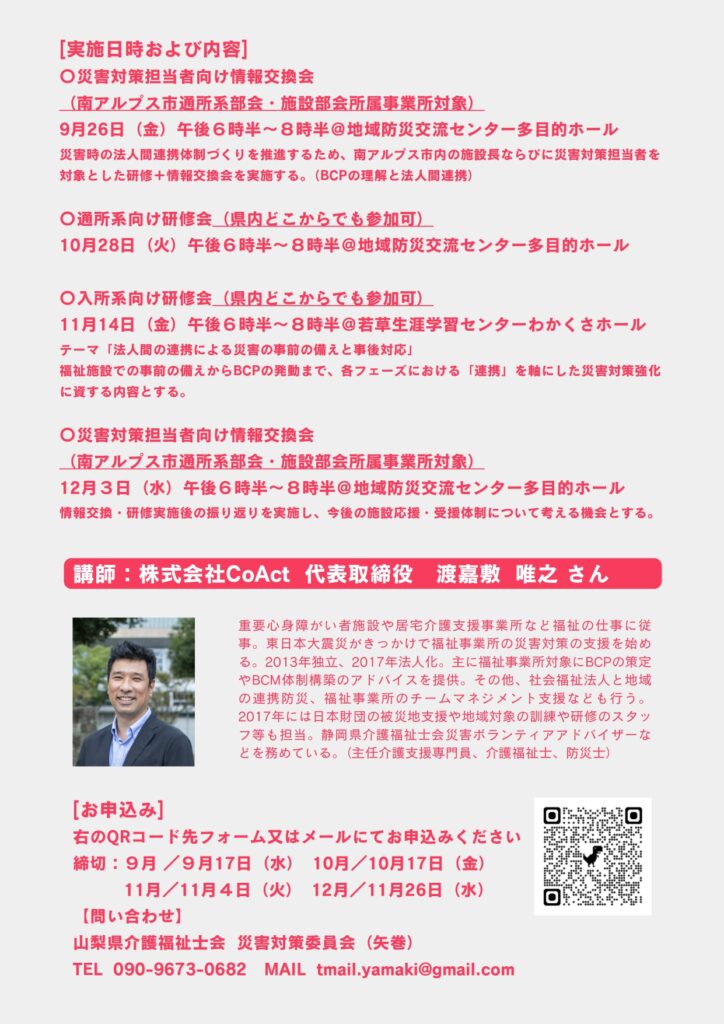 災害時の法人間連携体制を考える研修会のご案内