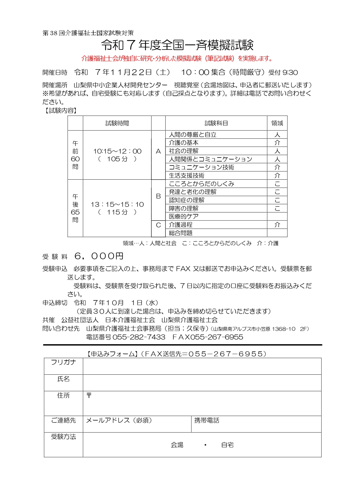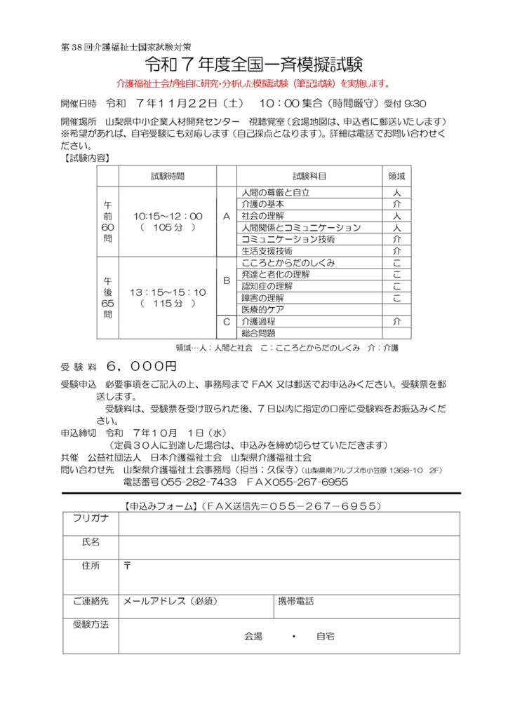 問い合わせ先 山梨県介護福祉士会事務局(担当;久保寺)(山梨県南アルプス市小笠原1368-10 2F)